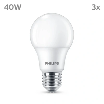 PHILIPS LED Frosted A60 Light Bulb 3 Pack [Warm White 2700K E27 Edison Screw] 40W, Non Dimmable. for Home Indoor Lighting