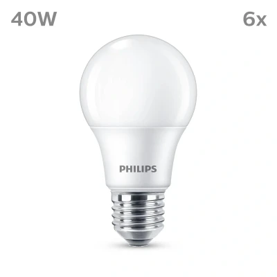 PHILIPS LED Frosted A60 Light Bulb 6 Pack [Warm White 2700K E27 Edison Screw] 40W, Non Dimmable. for Home Indoor Lighting