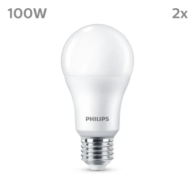 E27 LED lamp, 13W, 1,521lm, 4,000K with matte plastic bulb, in set of 2 This powerful LED lamp A67 with E27 base replaces conventional incandescent lamps with 100W. Due to the matte bulb, the universal white light is emitted homogeneously to all sides. - Supplied in a pack of 2 - not dimmable - high switching resistance: 50,000 cycles