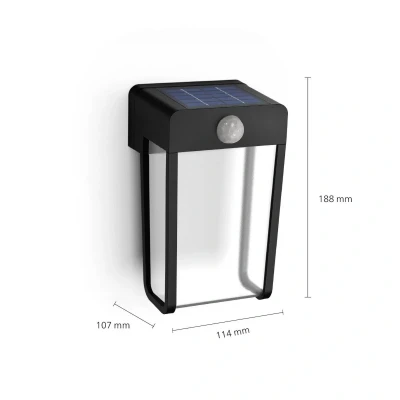 PHILIPS Lighting Jivix Outdoor Solar Wall Light, 1.4W, 2700K, Black, IP44 Weatherproof