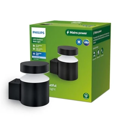 Philips Lighting Laven Outdoor Wall Light, 6W, 2700K Warm White Black, IP44 Weatherproof