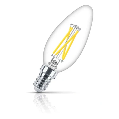 Illuminate your space with elegance using the Philips Master 2.5W LED Candle Light Bulb. Combining classic candle-shaped aesthetics with advanced LED efficiency, this dimmable bulb offers a stylish and energy-saving alternative to traditional incandescent candles.Consuming just 2.5 watts, this LED candle bulb provides the same brightness as a 25W incandescent bulb and boasts an impressive lifespan of up to 25,000 hours. The clear finish showcases the LED technology and delivers a bright, even light that mimics the warm, inviting glow of traditional incandescent bulbs.Emitting a warm white light at 2700K, this bulb creates a cosy atmosphere perfect for any setting. The innovative DimTone technology allows the light output to transition smoothly from 2700K to 2200K as the bulb is dimmed, replicating the warmer glow of traditional incandescent lighting and enhancing the ambience. Ideal for chandeliers, wall sconces, and decorative fixtures, the SES-E14 small Edison screw (14mm) base provides easy installation.Choose the Philips Master LED Candle Light Bulb for a refined, dimmable lighting solution that combines energy efficiency, long-lasting performance, all with the added versatility of DimTone technology and a classic candle shape.