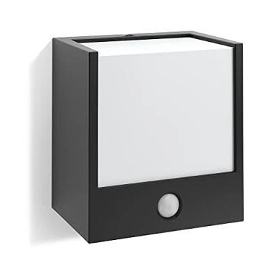 Lights.coAngular Macaw LED outdoor wall light with integrated motion detector Macaw impresses with its modern, contemporary design and simple elegance. The angular lamp body of the LED outdoor wall light is made from plastic, whereby the frame is black and the cover over the LED bulbs is white. The light is directed forwards and upwards by the specific construction; whilst a white plastic cover distributes the light evenly. As such, Macaw is a good example of an outdoor wall light that can be used to create atmospheric lighting for outdoor spaces. The integrated motion sensor should be mentioned here too. It means that the light switches on automatically if it detects movement, and then switches itself off again after a certain period of time. As such, it switches itself on quickly as required.