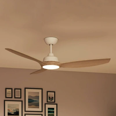 Philips Olas Ceiling Fan, 3 Blades, 24W LED Light, DC Motor, Color Temperature Range (3000K 4300K 6500K) with Dimmable Function, Remote Included, 52", white and wood