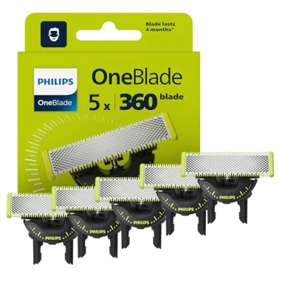 Philips OneBlade Authentic 5x 360 Blade Replacements Fits ALL handles Durable Stainless Steel 20 month supply, Model QP450/50