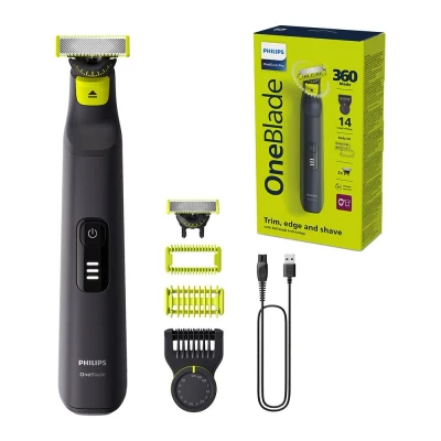 Philips OneBlade Pro 360 for Face & Body with 20 in 1 Adjustable Comb, Charging Stand, Travel Case Extra Blade QP6652/61