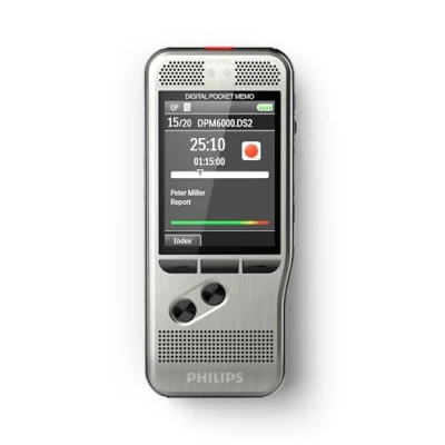 Philips PocketMemo Recorder SpeechExec DPM6000/02 Push Button Professional Dual Microphone Rechargeable Battery Colour Display