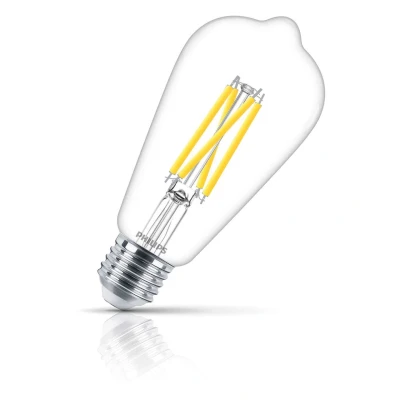 Elevate your lighting with the Philips Master Value 5.9W LED ST64 Light Bulb, combining a classic ST64 shape with modern LED efficiency. This dimmable LED bulb offers an energy-efficient alternative to traditional incandescent bulbs while providing a timeless aesthetic.Consuming just 5.9 watts, this LED ST64 bulb delivers the equivalent brightness of a 60W incandescent bulb and boasts a long lifespan of up to 15,000 hours. The clear finish highlights the advanced LED technology and provides a bright, even light that closely mirrors the warm glow of traditional incandescent bulbs.The warm white light at 2700K creates a cosy and inviting ambiance. The innovative DimTone technology allows the light output to transition smoothly from 2700K to 2200K when dimmed, replicating the warmer glow of traditional incandescent lighting and enhancing the mood of any space.Ideal for chandeliers, pendant lights, and vintage-inspired fixtures, the ES-E27 Edison screw (27mm) base ensures easy installation. Enjoy the modern benefits of LED technology, including reduced energy costs and extended bulb life, combined with the classic look and versatile functionality of the ST64 design.