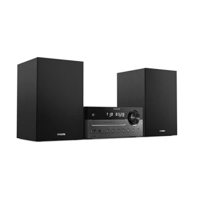 STEREO SOUND WITH BASS REFLEX SPEAKERS: 80 W RMS output, 2-way bookshelf speakers with 4” woofers and 2” tweeters support balanced sound with added low-frequency depth PLAYS FROM MULTIPLE SOURCES: Listen to DAB+/FM radio, play CDs and MP3 CDs, connect USB drives, or plug in external devices using the 3.5 mm audio-in port BLUETOOTH 5.4 AND AURACAST ENABLED: Stream wirelessly from your phone or tablet, and broadcast audio to other Auracast compatible speakers around your home DIGITAL SOUND CONTROL VIA APP: Choose preset sound styles and switch between sources using the Philips Entertainment app for added flexibility COMPACT DESIGN WITH ECO-CONSCIOUS MATERIALS: Classic micro system made with recycled plastic and shipped in plastic-free, FSC-certified packaging