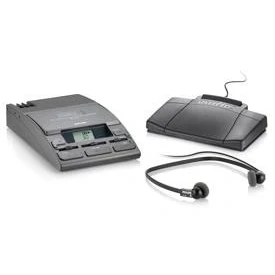 The Philips LFH720T Transcription Set contains all the necessary components to begin transcribing mini cassettes, including a headset, foot control, and power supply. This comprehensive kit is designed to handle substantial workloads effectively. The clear display provides users with a visual indication of the amount of work remaining on each tape, empowering typists to manage their time efficiently.