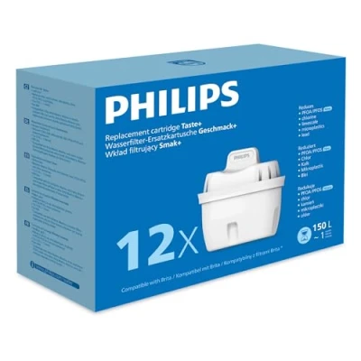 PHILIPS TASTE+ FILTER POWER: Effectively reduces harmful substances such as MICROPLASTICS, CHLORINE, LIMESCALE, HEAVY METALS, PFAS & other contaminants. SUPERIOR FILTRATION: High performance technology enabling 20% faster water filtration compared with similar models and greater limescale reduction. PROLONGS THE LIFETIME OF KITCHEN APPLIANCES by preventing limescale build-up and improves taste of your favourite beverages and meals. GOOD FOR THE ENVIRONMENT: Each filter lasts for 30 days and saves up to 200 plastic bottles (500ml). 3 MONTHS OF FRESH WATER: Each cartridge lasts approximately 1 month or 100 L. Compatible with Brita Maxtra, Maxtra+ and many drop-in oval shape filters without a valve. Brita Maxtra, Maxtra+ is registered trademark of Brita GmbH.