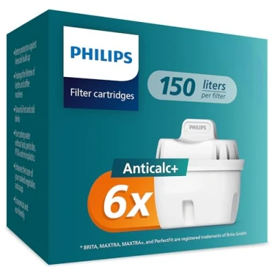 BETTER PROTECTION: With 50% more ion exchange resins, the Philips Anticalc+ filter provides enhanced water softening for hard water areas, which provide you crisp and pure-tasting water, as well as flavourful hot and cold drinks. It also helps to prolong the life of your kettle by preventing limescale build-up. Compatible with Brita Maxtra, Maxtra+ and many drop-in oval shape filters without a valve. Brita Maxtra, Maxtra+ is registered trademark of Brita GmbH. PHILIPS ANTICALC+ FILTER POWER: Effectively reduces harmful substances such as MICROPLASTICS, CHLORINE, LIMESCALE, HEAVY METALS, PFOA & other contaminants. SUPERIOR FILTRATION: High performance technology enabling 20% faster water filtration compared with similar models and greater limescale reduction. PROLONGS THE LIFETIME OF KITCHEN APPLIANCES by preventing limescale build-up and improves taste of your favourite beverages and meals. GOOD FOR THE ENVIRONMENT: Each filter lasts for 30 days and saves up to 200 plastic bottles (500ml). 6 MONTHS OF FRESH WATER: Each cartridge lasts approximately 1 month or 150 L.