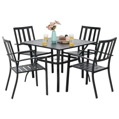 PHIVILLA Garden Table and Chairs Set of 4 Patio Metal Outdoor Bistro Furniture Sets Weather resistant (Strip)