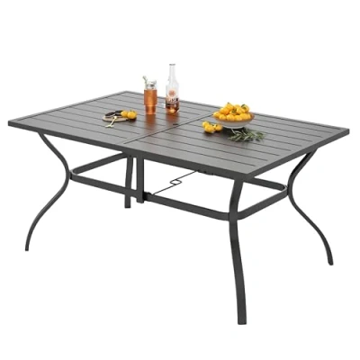PHIVILLA Garden Table Outdoor Patio for 6 Person 152 * 95cm Rust Proof Steel Frame with Parasol Hole Dining Maintenance Free (Black)