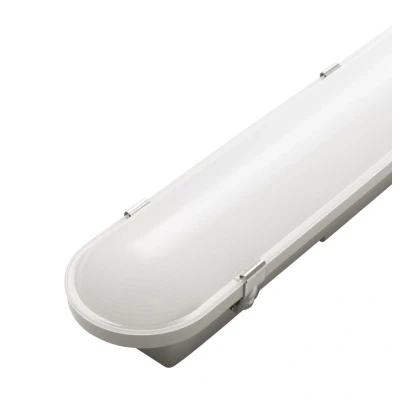 The Lykos 4ft high output integrated LED batten light has been designed as a direct replacement for twin T5 and T8 linear outdoor fluorescent luminaires. Consuming only 40W to provide 4000 lumens, this high output LED non-corrosive fitting is an ultra-energy-efficient choice for industrial environments such as garages, public car parks, workshops and food preparation areas which require tough, weatherproof fittings.This Lykos twin LED batten light comes with a 40W integrated LED strip with a 50,000 hour rate life, meaning it will be years before the fitting will need to be replaced while also removing the need for maintenance, subsequently costs.The tri-proof fitting is constructed from an IK08 impact rated moisture and acid-resistant ABS body with polycarbonate diffuser. With an IP65 rating, it is suitable for indoor and outdoor use making it ideal use in areas where a tough robust led batten light is required. The stainless steel anti-tamper clips mean that this fitting is also vandal proof.Installation is simple thanks to the two loop-through continuous feed terminal blocks (with continuous live feed). This saves an incredible amount of time, especially with projects requiring multiple fittings to be installed, as the loop-in/loop-out terminals make it possible to wire directly from fitting-to-fitting.Another great feature is the colour changing technology (CCT), which allows you to select from warm white, cool white or daylight light outputs. Simply pre-select the colour temperature that you desire before installation.The Phoebe Lykos LED batten light fitting is suitable for conduit, surface, or suspension mounting.
