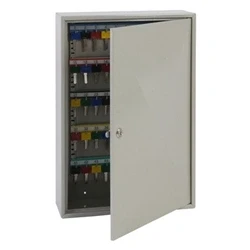 NO. OF KEY HOOKS - 100. LOCKING - Manufactured with a high quality cylinder lock supplied with 2 keys. SPECIAL FEATURES - Comes complete with adjustable hook bars, key tabs, key rings, number labels to suit the hook bars and removable control indexes.
