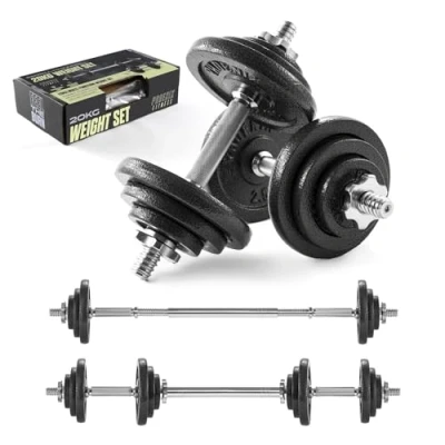 Phoenix Fitness 20kg Cast Iron Adjustable Dumbbell Barbell Weight Set Men Women Strength Training Equipment Home Gym Lifting Free Weights Hand