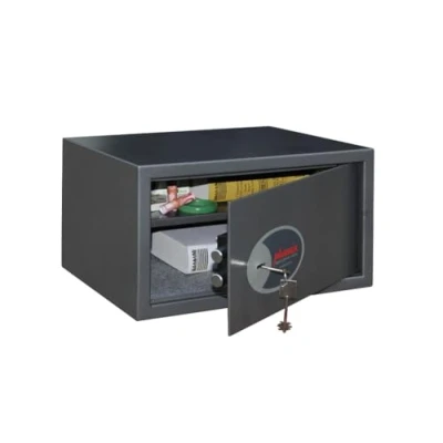 Designed with both robustness and aesthetics in mind, the safe is constructed from a durable steel plate for both the door and body. It includes an internal shelf that maximizes storage capacity, making it ideal for organizing your items efficiently. Weighing 12 kg and with outer dimensions of 250 x 450 x 365 mm and inner dimensions of 240 x 440 x 325 mm, the safe offers a generous capacity of 34 litres, perfect for storing cash, jewellery, important documents, and laptops up to 17 inches.