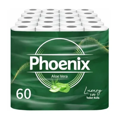BULK BUY: Phoenix toilet roll 60 pack is the perfect bathroom tissue bulk buy for busy households. Designed to meet your family's everyday needs, these bulk toilet rolls 3 ply offer premium softness, strength and great value in every roll. SUSTAINABILITY: Eco friendly materials- Our 3 ply toilet tissues and inner cardboard rolls are fully recyclable and biodegradable, the plastic packaging is made from 30% recycled materials, making Phoenix a responsible choice for eco-conscious households. SOOTHING SCENT: Phoenix lavender toilet paper features a subtly infused core that releases a gentle aloe vera aroma, bringing a calming touch to every bathroom visit. QUILTED LUXURY: Phoenix 3 ply toilet rolls are made with three layers of ultra soft white tissue, offering enhanced thickness & durability, strong and absorbent for every day comfort you can count on. LOCALLY MADE, LOWER IMPACT: Proudfully manufactured in the UK reducing transport carbon emissions and supporting local jobs and communities.