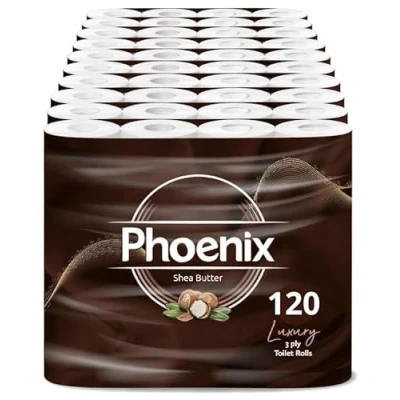 Phoenix Soft Shea Butter Fragranced Luxury Toilet Rolls Bulk Buy Quilted White 3 Ply Paper (120 Pack)