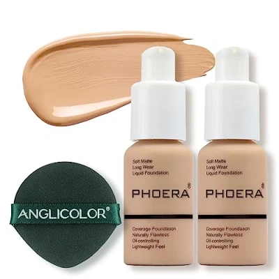 PHOERA Face Foundation,Liquid Foundation,Foundation Full Coverage Long Lasting Perfect 30ml Matte Oil Control Concealer 6 Colors Optional,Great Choice and Gift (2PC#104 Buff Beige, 60 ml (Pack of 2))
