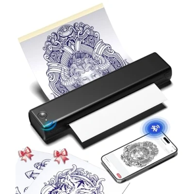 Portable Phomemo M08F Tattoo Printer - Specifically built for tattoo use. Phomemo tattoo stencil printer boasts lightweight and wireless design, Weighing only 715g, equivalent to a bottle of water, - a mere 60% of the size of traditional tattoo transfer machines. Its built-in rechargeable battery ensures you're never tethered to a charging cable, providing unparalleled convenience Sand ease-of-use for tattoo artists on-the-go High Compatibility - With its compatibility with multiple devices such as smartphones, tablets, laptops, and desktop computers, M08F thermal tattoo printer makes designing and printing easier than ever for tattoo enthusiasts. It's compatible with various systems, including Android, iOS, Windows, MacOS, and ChromeOS Powerful Phomemo App - Say goodbye to complicated printing processes, Unlike traditional tattoo printer that require printing on white paper before copying, you can print your designs instantly with our "Phomemo"app Wireless inkless Printing - Phomemo M08F wireless tattoo stencils printer uses advanced thermal technology to print clear and precise patterns and lines. You won't have to deal with ink-related blockages or cleaning problems, ensuring an efficient and hassle-free process for professional tattoo artists. This allows you to focus on creating high-quality temporary or permanent tattoos for your clients Rechargeable - The M08F tattoo printer with a large capacity 1200mAh battery. With just one full charge, you can print up to 140 pages of images, making it perfect for multiple tattoo printing sessions. As an added bonus, M08F stencil printer for tattooing include 10 sheets of tattoo transfer paper to help you get started
