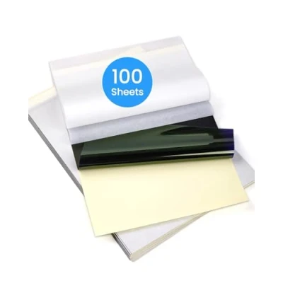 【Work Great】M08F Tattoo Transfer Paper come with 100 sheets tattoo stencil paper, These tattoo stencil transfer paper can be easily, cleanly and smoothly transferred to skin. If the transfer is incorrect, you can use alcohol to wipe the tattoo transfer marks.Compatible with M08F TP81 TP83 TP88 A886 A887 Tattoo Stencil Machine 【Premium-Quality Materials】The tattoo transfer paper is made of high-quality dyes and wax paper.4 layers of transfer paper, the first layer of white master; 2 layers of translucent protective paper (throw away before use); three layers of blue carbon pages; the 4th layer of yellow backplane 【Two Ways To Use】The transfer paper copies the image you want onto the paper, then passes through the transfer paper, and finally reaches the skin. It is highly compatible with thermal printers or dot matrix printers. Or use the ballpoint pen used for hand-drawn templates to draw the original design 【High Quality】Phomemo tattoo carbon paper is made of high-quality ink that does not fade and dye, safe to your skin, you can easily transfer tattoos to your body.A4 Size 8.27" x 11.69"(210x297mm), which can be cut down into smaller sheets for more use 【Warm Tips】The tattoo transfer paper need to work with transfer medias.You will need to purchase the stencil ointment separately