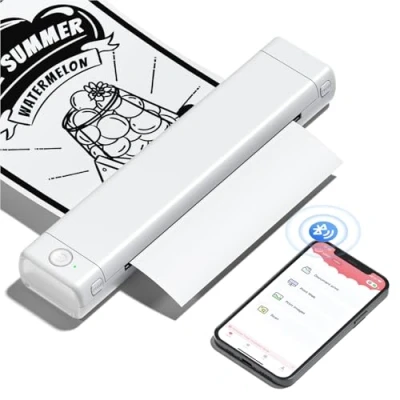 Phomemo M08F Thermal Printer Portable Wireless A4 Mobile Printers for Home Use Office, Bluetooth Inkless Compatible with Laptops & Smartphone, White
