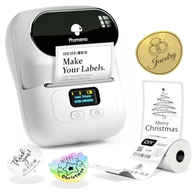 Upgraded Label Maker: The upgraded Phomemo 2-inch label printer supports both label editing and printing via a mobile app and direct printing from a computer, making it particularly suitable for businesses requiring bulk printing. It connects easily to Windows and Mac operating systems via a USB interface. MUTLI-PURPOSE FOR WIDE USAGE: Phomemo Label Maker is capable to print labels from 0.78'' to 1.97'' width (NOT for 4x6 label). Provided multiple kinds of lables(optional) to meet any need whether it's business or household, including price labels, clothing tag labels, jewelry price tag, labels for home organization, pill organizer, files or office equiments, cable labels, decorated name labels, etc. Great for business, or decorating a fridge, laptop, locker, scrapbook, notebook and more CREATE, EDIT AND PRINT: Download Print Master (iOS 9.0, Android 5.0 and above), intall custom label roll before one-step setup to connect the printer to your device in Print Master, then it's your time to create. Print Master provides a variety of ready-to-use templates for wide usage, thing are lot more easier when you can just type in words. Insert your photos to print them on labels, or use your cellphone as a OCR scanner in the app are different ways to realize your ideas, too DURABLE AND SPEEDY: The label maker gets 4 hours continuous working time form full charged built-in 1500 mAh lithium battery. The printing speed is adjustable, prints labels at 0.8'' - 2.4''/s (20-60 mm/s), available for heavy use WHAT'S IN THE PACKAGE: Package includes a Phomemo Label Maker, a USB charging cable, an instruction manual and enclosed one sticker paper roll (1.57'' x 1.18'', 100 pieces) for a startup
