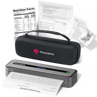 Phomemo Portable Printer Kit: 1 portable thermal printer weighing only 700 g, 1 carrying case, 4 rolls thermal paper roll (53, 80, 110, 210 mm width). The portable printer with a built-in 2600mAh battery, you can print even when you are away from a power outlet, whether you are travelling on business, going to school, driving, or other mobile scenarios, you can easily meet your printing needs. (The 210 mm wide thermal paper is placed inside the portable printer) All in One Printer: Phomemo thermal printer a4 has a removable card tray and can print on 216 mm/210 mm/110 mm/80 mm/53 mm wide thermal paper, it can print receipts, contracts, photos, pictures, diaries, DIY, greeting cards, study notes, small notes, long banners, to-do lists and more. It is a good helper for your study and office. (please note: prints on thermal paper only) High Definition Print: Phomemo portable printer a4 has a resolution of 300 dpi, which is 1.5 times the dots per inch of a 203 dpi printer, using phomemo thermal paper for optimal instant printing, ideal for those applications that demand higher print quality, examples include printing high-resolution images, detailed graphic designs, or documents that require precise detail Inkless Thermal Printing Technology: Phomemo travel printer use thermal printing technology, each printer comes with its own roll of A4 thermal paper, eliminating the need for expensive inks, toners and ribbons as well as clogging and cleaning problems, and is more economical, using thermal printing paper at a cost of as little as Pound 0.14 per sheet. (please note: black and white printing only) Wide Compatibility: Phomeo inkless printer is compatible with Android and iOS mobile phones (connects via Bluetooth and operates through the phomemo app) as well as Windows and MacOS computers (connects via USB cable only, downloads and installs drivers) and supports a wide range of print formats such as Word, Excel, PDF, TXT, JPG, Web content and graphics