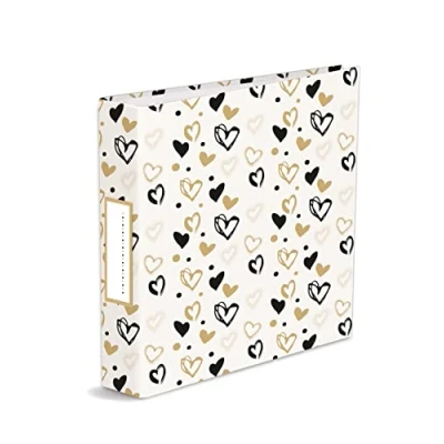 Photo Album 32X31 Rings Gold and Black Hearts 40 White Perforated Sheets