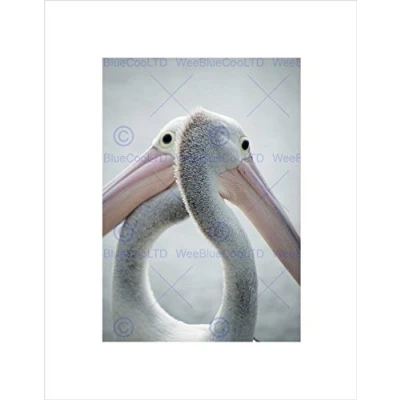 PHOTO ANIMALS TWO PELICANS HEADS NECKS BILL BLACK FRAMED ART PRINT B12X13288