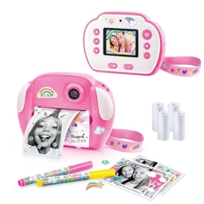 INSTANT PRINT FUN – Snap and print photos in seconds with no ink needed! Includes a 1000mAh rechargeable battery and USB cable for creative fun anywhere. Use the selfie lens and timer for perfect shots! CREATIVE PLAY – Decorate photos with stickers, markers and fun frames! Add filters to pictures and videos with built-in designs, then customise your 200dpi instant prints using four colourful markers. RECHARGEABLE & PORTABLE – Features a built-in rechargeable battery and USB charging for creative fun anywhere! Compact and lightweight, it’s packed with accessories to spark kids’ imagination. LOW RUNNING COSTS – Uses ink-free thermal paper rolls with affordable refill packs available. Compatible with Refill ASINs B0B5LVTZMV (white) and B0CP49LSMT (colour) for endless printing fun. PERFECT GIFT FOR KIDS – A fun and creative present for birthdays, Christmas or special occasions. Ideal for children aged 5+ who love taking photos, decorating prints and capturing memories. Contents: 1 x Camera, 1 x USB cable, 1 x Wrist strap, 4 x Paper rolls, 1 x Sticker sheet, 4 x Markers, 1 x Manual If you like the look of the Photo Creator Kids Instant Print Camera, why not take a look at some of the other items in this range including the Photo Creator Kids Instant Print Camera Case (B0CB5ZNPKX) to protect your Photo Creator Kids Instant Print Camera, and the Photo Creator Instant Print Photo Album (B0DPJ6S9VQ) to store all your photos! Refill packs are available for this item - Photo Creator Instant Print Camera 10 Pack Refill (B0B5LVTZMV), and Photo Creator Instant Print Camera Colour Refill (B0CP49LSMT). The Photo Creator Kids Instant Camera Pink is also available in blue (B0CB4R6TS6).