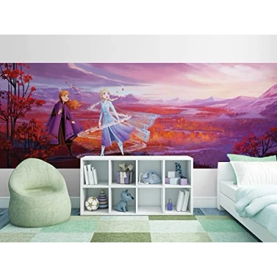 German special photo wallpaper paper, odourless, smooth and environmentally friendly. FSC certified product. Our professional photographers and designers ensure a high level visual experience. Brilliant, fade-resistant, waterproof and odourless colours. All our materials are solvent-free, phthalate-free and harmless in the interior. Apply the photo wallpaper with paste and each perfectly fitting sheet approx. Leave to soak for 3 minutes. Wallpaper with approx. 2-3mm overlap Frozen Elsa and her sister Anna boldly face all the challenges awaiting them in the autumnal kingdom of Arendelle., Manufacturer: Komar