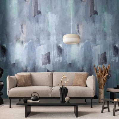 Photo wallpaper wall Profhome 782072 non woven smooth aquarelle style matt blue pigeon grey green 1,59 m x 2,8