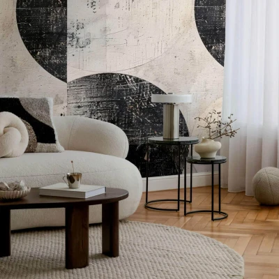 Photo wallpaper wall Profhome 791441 hot embossed non woven slightly textured with geometric shapes matt black cream silk grey beige 1,59 m
