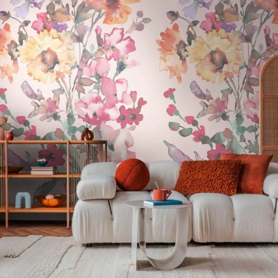Photo wallpaper wall Profhome 791453 hot embossed non woven slightly textured with floral pattern matt pink pastel yellow green purple 1,59