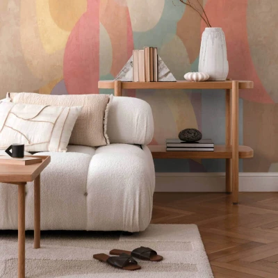 Photo wallpaper wall Profhome 791455 hot embossed non woven slightly textured with abstract pattern matt orange pastel yellow light blue