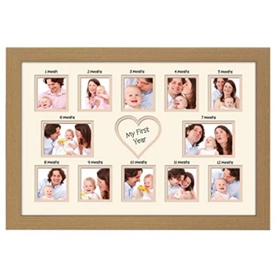 Photos in a Word My First Year Light Oak Finish Personalised Photo Frame Double Mounted Overall size of 20 x 14 Inch (50cm 35cm) Depth 15mm … (Cream Mount with Beige Inside)