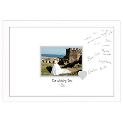 Photos in a Word Wedding Signing Guest Photo Frame 7x5 Gift 697D (White Finish White Grey Inside)