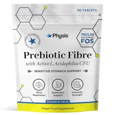PHYSIS PREBIOTICS WITH ADDED PROBIOTICS: Harnessing the power of prebiotic fibre (Fructooligosaccharides) and probiotics (Lactobacillus Acidophilus), these unique capsules offer effective microbiome therapy for sensitive stomachs prone to irritation and disruption as well as anti diarrhea & constipation relief. ENHANCED DIGESTION SUPPLEMENT: Our bio culture pre-and-pro biotic blend provides comprehensive support for your digestive system and promotes overall gut health. By addressing gut imbalances and nourishing healthy bacteria, our indigestion tablets help breakdown food, support irritable bowels, reduce bloating and relieve gut dysfunction. BOWEL MOVEMENT REGULATION: Are your bowel movements irregular? Do you experience cramping and discomfort? Physis Prebiotics fibre support offers a premium solution for a healthy gut microbiome and colon cleanse. Take control of your bowel movements and regulate your daily stools today! ULTIMATE GUT CLEANSE: Tailored to alleviate mild to severe gut disorders, our Physis Prebiotics encourage better intestinal health and improved digestion for the long term. With a convenient 1-a-day easy-to-swallow vegan capsule, Physis Prebiotics make it simple to maintain optimal gut health effortlessly. PROUDLY BRITISH: Our proudly British Food Supplements are produced in our very own certified Facility in UK. With lab tested ingredients our HACCP Manufactured Supplements are designed to address fundamental nutritional and microbial defiencies in the modern diet. We are on a mission to help our customers make small additions to their routines that can lead to big improvements in everyday health and wellbeing. Small things can make a big impact!