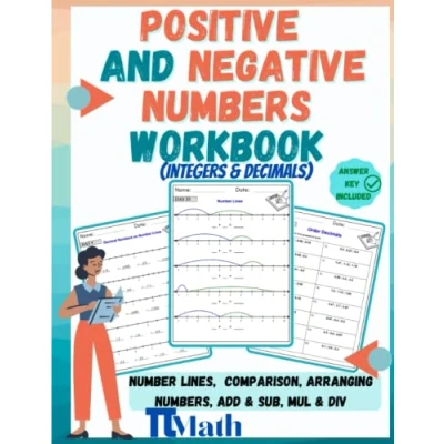 PI MATH Positive and Negative Numbers Workbook, Integers Decimals: Number Lines, Comparison, Arranging Numbers, Add, Subtract, Multiply, Divide Middle School