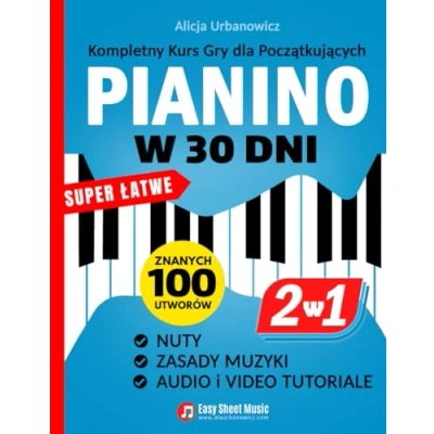 PIANINO w 30 Dni: Kompletny Kurs Gry dla Początkujących i 2 Książki 1 Super Łatwe Nuty, Zasady Muzyki, Audio Video Tutoriale: ... Tutoriale