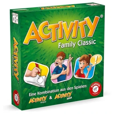 Activity – the party classic – belly laughs – miming with the hands and feet...as the timer is running. Write, represent or draw assembled main words so that they can be guessed by fellow players in 60 seconds – this is how simple yet ingenious the game of ‘Activity’ is – a real original from Austria. Original and junior cards are included in this Activity Edition The Piatnik Activity Familiy Classic game ensures action-packed fun. This activity edition is a combination of the Activity Original and Activity Junior games and is ideal for families. This is where children get their money's worth when playing As with the classic Activity game, it is about describing, representing or drawing the terms specified on the cards to be guessed by the players., Manufacturer: Piatnik