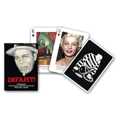 Card game with the motif "Infamy" 52 sheets + 2 jokers + 1 information card Playing cards feature classic depictions of famous and notorious criminals of contemporary history Playing cards in poker format, Manufacturer: Piatnik