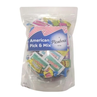 Picaboxx 100 Pieces of Pick & Mix American Sweets Candy Pouch Sweet Surprise Collection Hamper Gift Chew Crunch