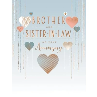 A High Quality Greeting Card and Envelope From Piccadilly Greetings Designed and made in the UK - supporting British jobs Caption: Anniversary Brother & Sister-in-Law Description: Foil hearts Approximate size: 8 x 6