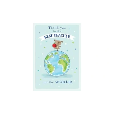 A High Quality Greeting Card and Envelope From Piccadilly Greetings Designed and made in the UK - supporting British jobs Caption: Thank You Teacher Description: Bear on world Approximate size: 7 x 5 inches