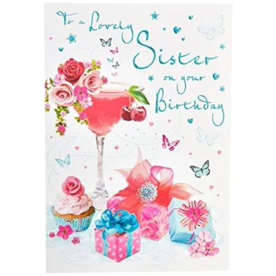 A High Quality Greeting Card and Envelope From Regal Publishing Designed and made in the UK - supporting British jobs Caption: Sister Description: Cocktail Approximate size: 9 x 6 inches