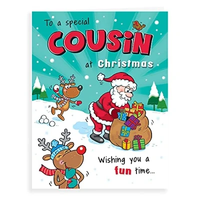 Piccadilly Greetings Character Christmas Card Cousin 8 x 6 inches, A41283